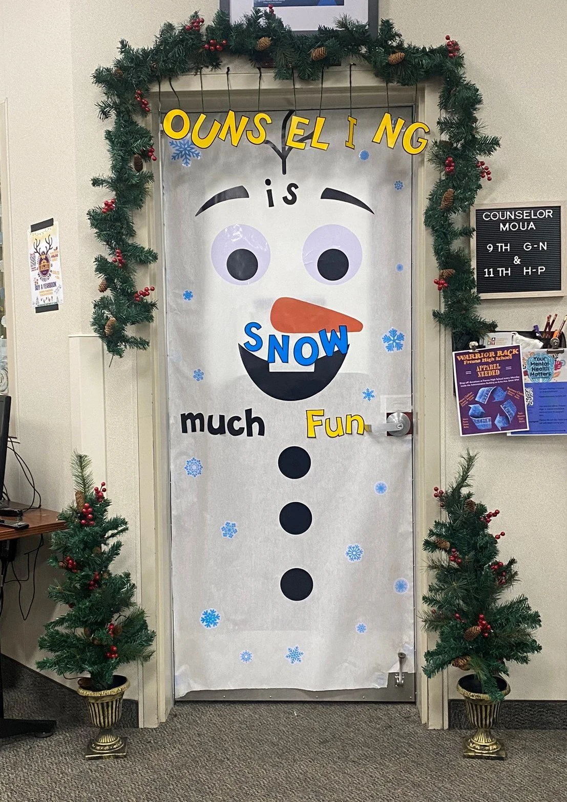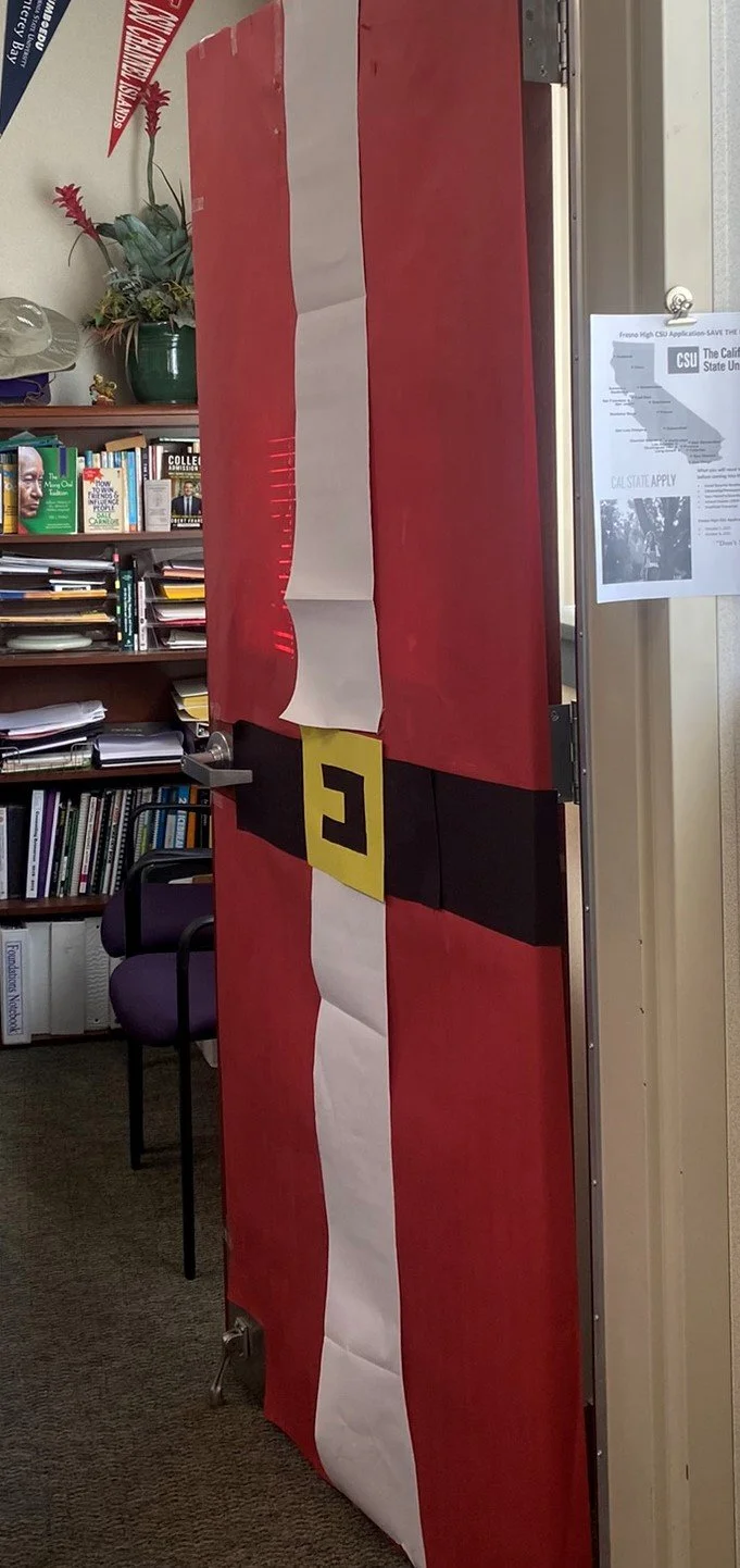 The Fresno High 2021 Door Decorating Contest was announced on November 11 and ended on December 15. Judging took place on December 15. Mrs. Melissa Bangerter (Mama B) oversaw this event. Many staff participated this year, like the counselors, attendance staff, and VPs. Fifth period teachers and their students were the primary focus. Multiple classes worked hard on their doors in the hope of winning the contest.